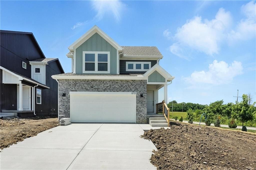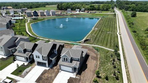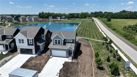 **UNDER CONSTRUCTION** Complete around mid December. The amazing Sienna by award winning Summit Homes in Lees Summit school district! This beautiful 1.5 story, 3 bedroom home is waiting just for you! This location looks over the beautiful neighborhood pond and this home is Energy Star Certified, includes a sprinkler system, has Series 3 upgrades, a daylight basement and deck to enjoy the pond view!! The main level has everything you need, including the primary bedroom and laundry room. The primary bathroom features a large double vanity with quartz counter tops and sizeable walk-in closet. The amazing open concept of this home makes for wonderful entertaining and includes an oversized kitchen island with quartz counter top, providing additional space for eat in dining. The upstairs has two bedrooms and a second bathroom with quartz counter top. Amenities include a pool, 2 playgrounds, 2 acre stocked pond with walking trail and covered Pavillon, perfect for outdoor entertaining! Convenient location with easy access to HWY, shopping and great restaurants! This is a dirt lot! **Come see our model at 8733 SW Edgewater Dr** Pictures listed are from a previous model but will also have a pond view.