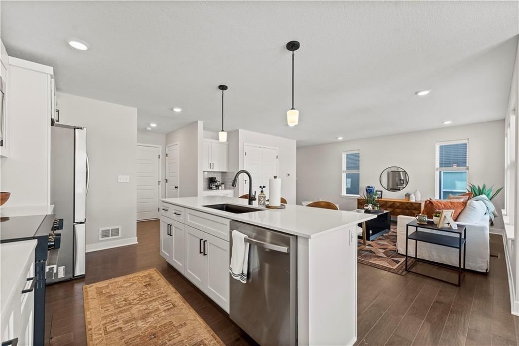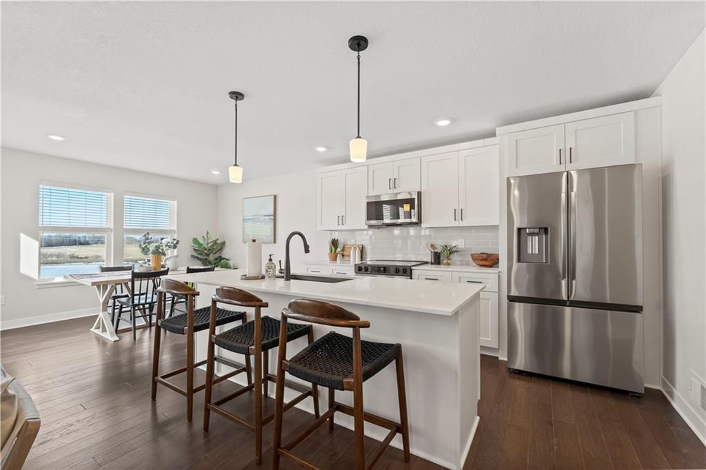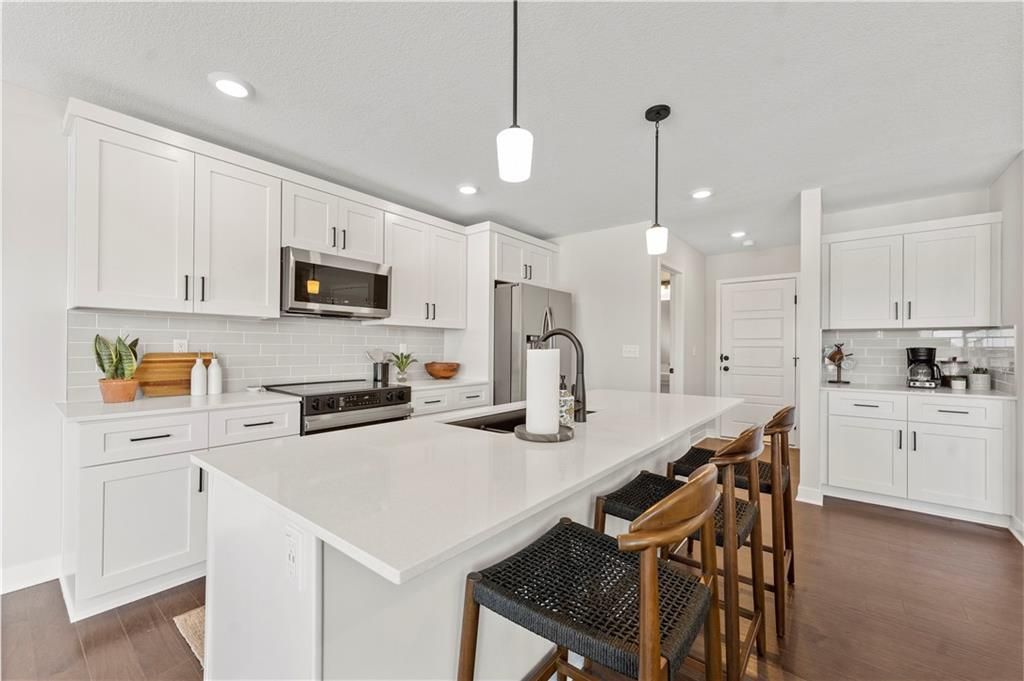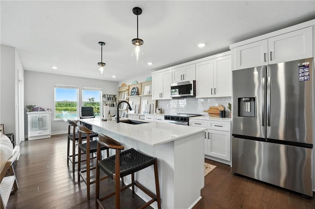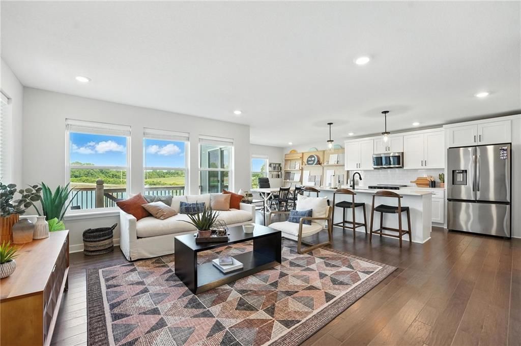 Current model home, NOT FOR SALE!! The Saffron floor plan by award winning Summit Homes! Spacious main level for daily living with all bedrooms and laundry on the upper level. This home overlooks the beautiful neighborhood pond! Includes large island with quartz countertop in the kitchen that overlooks the Dining room/Great Room. Hardwoods throughout the main level. Large Primary Bedroom with an open spa-like bathroom. The Primary Bathroom has an oversized quartz vanity with double sinks and a walk-in tiled shower. Beautiful landscaping and Irrigation system included. Possible 5th bedroom with basement finish. Amenities include the luxury of a beautiful two-acre stocked pond, beautiful pool, playground, covered pavilion with tables and a grill. **This particular location is the current model and NOT for sale.**