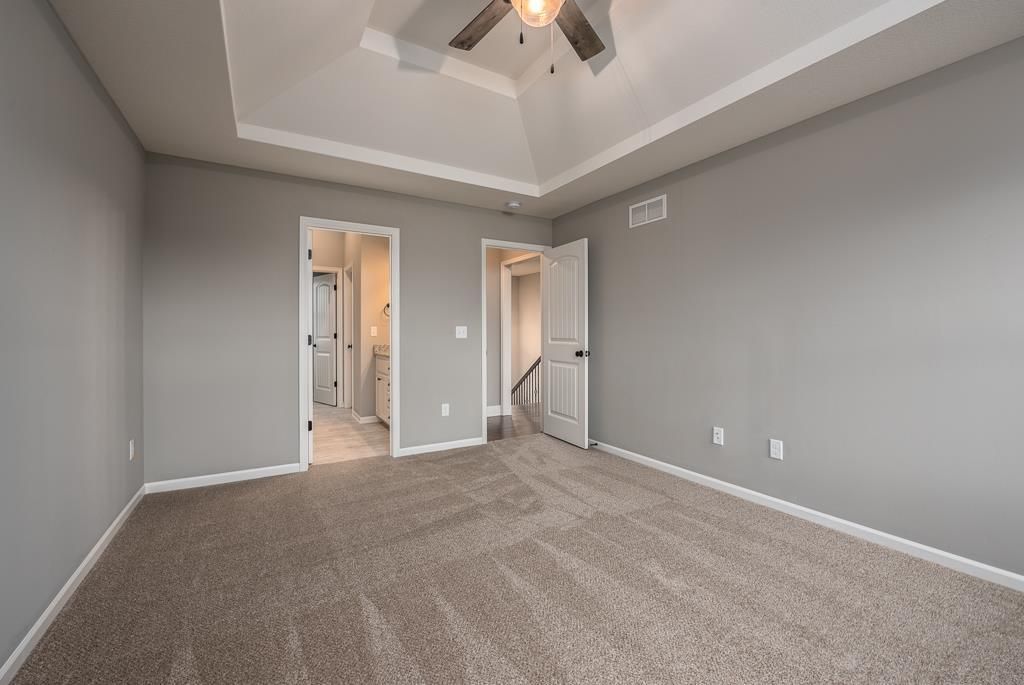 4-BEDROOM SPLIT ENTRY WITH MODERN UPGRADES ON A SPACIOUS LOT! Looking for a brand-new home with style, comfort, and functionality? The Asher Plan delivers it all. This 4-bedroom, 3-bath beauty features an open layout with a kitchen designed for gathering - complete with granite counters, hardwood floors, and a peninsula that opens seamlessly into the dining and living areas. The master suite is your private retreat with a walk-in closet, double vanities, and a tiled shower. Downstairs, the finished basement offers a cozy family room and 4th bedroom - perfect for guests, a home gym, or an office. Step out to your covered deck to enjoy peaceful evenings and scenic views. The oversized 3-car garage provides space for vehicles, tools, and toys. Located just minutes from shopping, schools, and highways, this home combines rural charm with modern living. Seller is a licensed Realtor in Kansas and Missouri. Photos are of a similar model; taxes and room sizes are estimated.